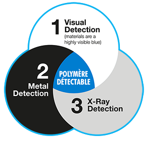 Nous sommes uniques dans l’industrie - la seule société à offrir des matériaux conformes aux normes alimentaires qui sont détectables de trois façons :